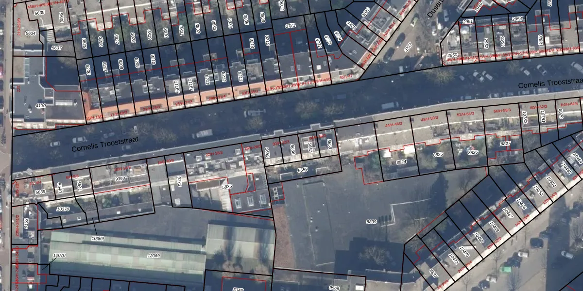 Het perceel waarop Cornelis Trooststraat 32-1 staat heeft een oppervlakte van 59 m². Dit is een klein perceel. De perceeloppervlakte wordt geregistreerd door het Kadaster. Gedetailleerde informatie over de maten van dit perceel kunt u vinden in het rapport Kadastrale kaart met maatvoering van Cornelis Trooststraat 32-1.