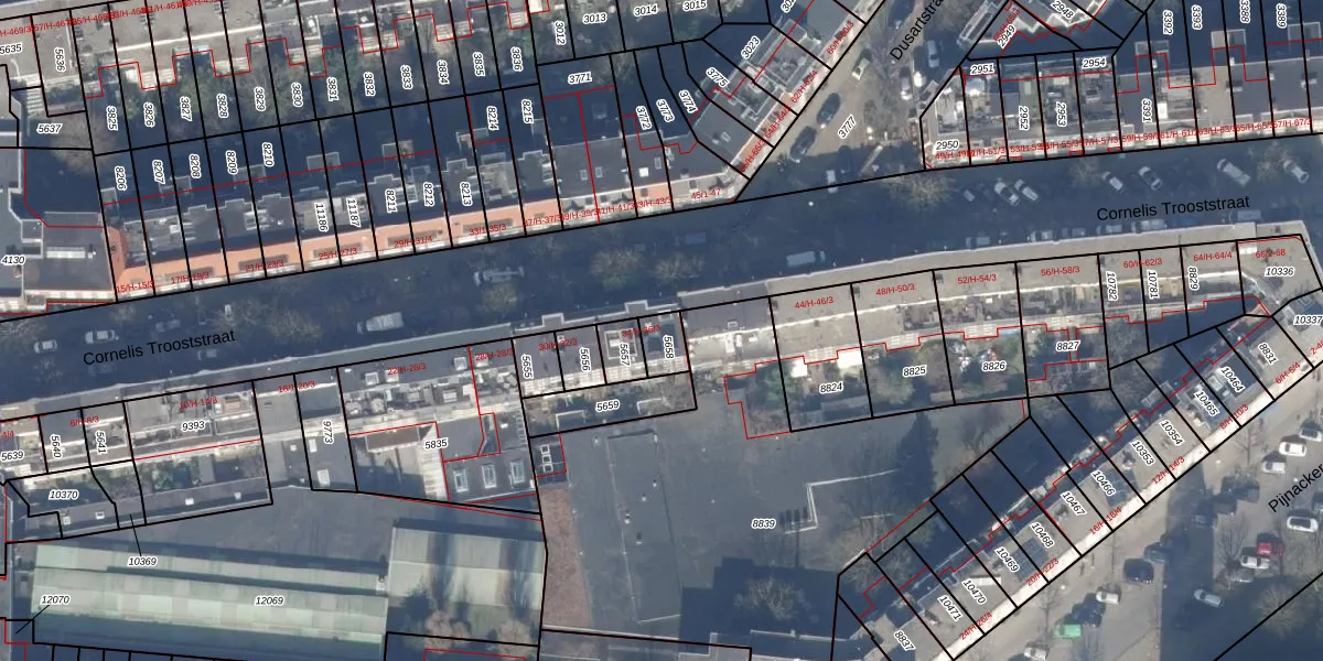 Het perceel waarop het adres ligt is ASD18-V-5658. De afkorting 'ASD18' staat voor kadastrale gemeente Amsterdam. Het perceel is 60 m² groot. Dat is kleiner dan de gemiddelde perceeloppervlakte in Amsterdam, dat op 558,8 m² ligt. Het grootste perceel in de kadastrale gemeente is 12,5 ha. Het kleinste perceel heeft een oppervlakte van 0 m². Er zijn 5 adressen aanwezig op het perceel. In de Basisregistratie Kadaster (BRK) werden de grenzen van het perceel geregistreerd op 20-09-2006.