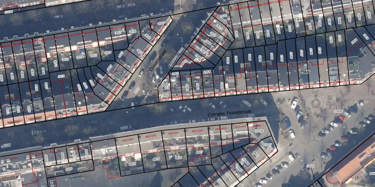 Het perceel waarop Cornelis Trooststraat 53-H staat heeft een oppervlakte van 90 m². Dit is een klein perceel. De perceeloppervlakte wordt geregistreerd door het Kadaster. Gedetailleerde informatie over de maten van dit perceel kunt u vinden in het rapport Kadastrale kaart met maatvoering van Cornelis Trooststraat 53-H.