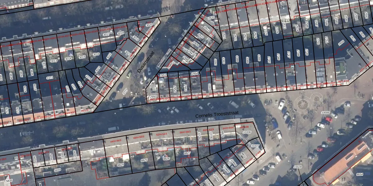 Het perceel waarop het adres ligt is ASD18-V-2953. De afkorting 'ASD18' staat voor kadastrale gemeente Amsterdam. Het perceel is 92 m² groot. Dat is kleiner dan de gemiddelde perceeloppervlakte in Amsterdam, dat op 558,8 m² ligt. Het kleinste perceel in de kadastrale gemeente is 0 m² groot. De grootste perceeloppervlakte is 12,5 ha. Op het perceel zijn 4 adressen aanwezig. In de Basisregistratie Kadaster (BRK) werden de grenzen van het perceel geregistreerd op 20-09-2006.