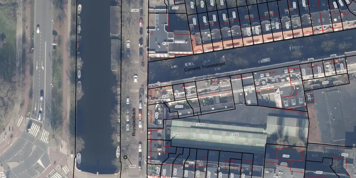 Het perceel waarop het adres ligt is ASD18-V-5640. De afkorting 'ASD18' staat voor kadastrale gemeente Amsterdam. Het perceel is 58 m² groot. Dat is kleiner dan de gemiddelde perceeloppervlakte in Amsterdam, dat op 558,8 m² ligt. De grootste perceeloppervlakte in de kadastrale gemeente is 12,5 ha. De kleinste oppervlakte bedraagt 0 m². Op het perceel liggen in totaal 4 adressen. In de Basisregistratie Kadaster (BRK) werden de grenzen van het perceel geregistreerd op 21-09-2006.
