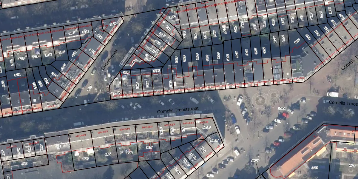 Het perceel waarop het adres ligt is ASD18-V-3392. De afkorting 'ASD18' staat voor kadastrale gemeente Amsterdam. Het perceel is 136 m² groot. Dat is kleiner dan de gemiddelde perceeloppervlakte in Amsterdam, dat op 558,8 m² ligt. Het kleinste perceel in de kadastrale gemeente is 0 m² groot. De grootste perceeloppervlakte is 12,5 ha. Er zijn 3 adressen aanwezig op het perceel. In de Basisregistratie Kadaster (BRK) werden de grenzen van het perceel geregistreerd op 20-09-2006.