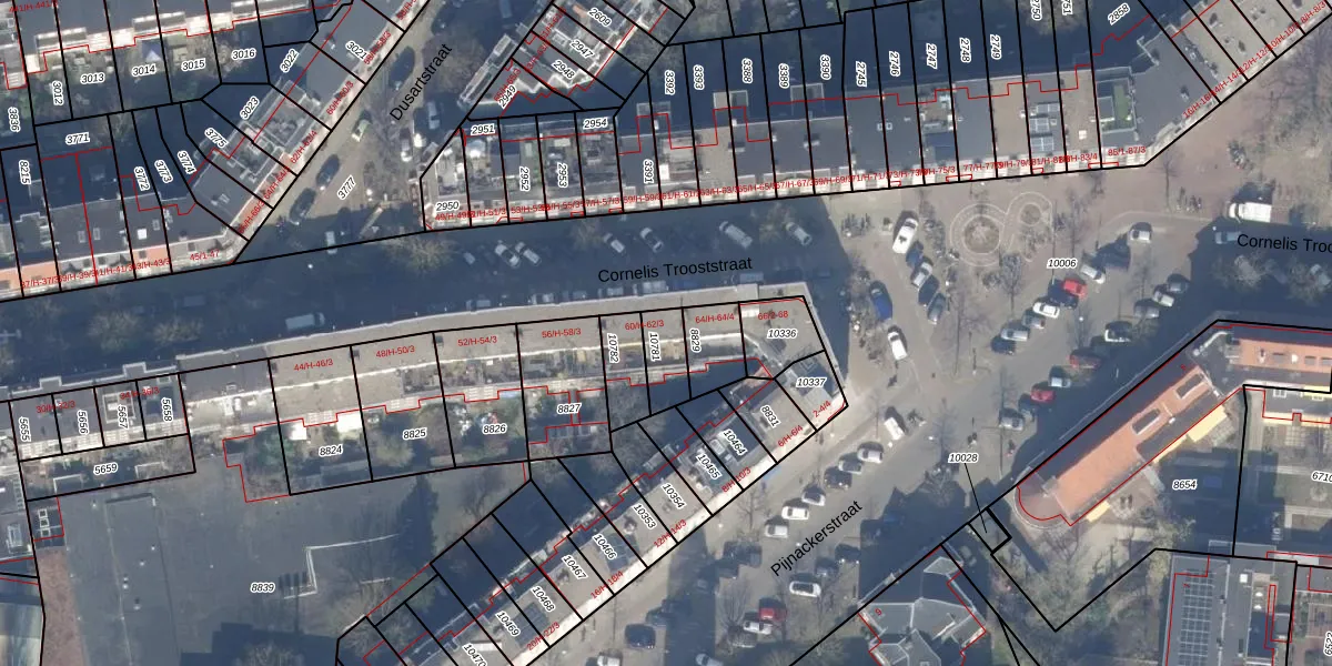 Het perceel waarop Cornelis Trooststraat 62-1 staat heeft een oppervlakte van 94 m². Dit is een klein perceel. De perceeloppervlakte wordt geregistreerd door het Kadaster. Gedetailleerde informatie over de maten van dit perceel kunt u vinden in het rapport Kadastrale kaart met maatvoering van Cornelis Trooststraat 62-1.