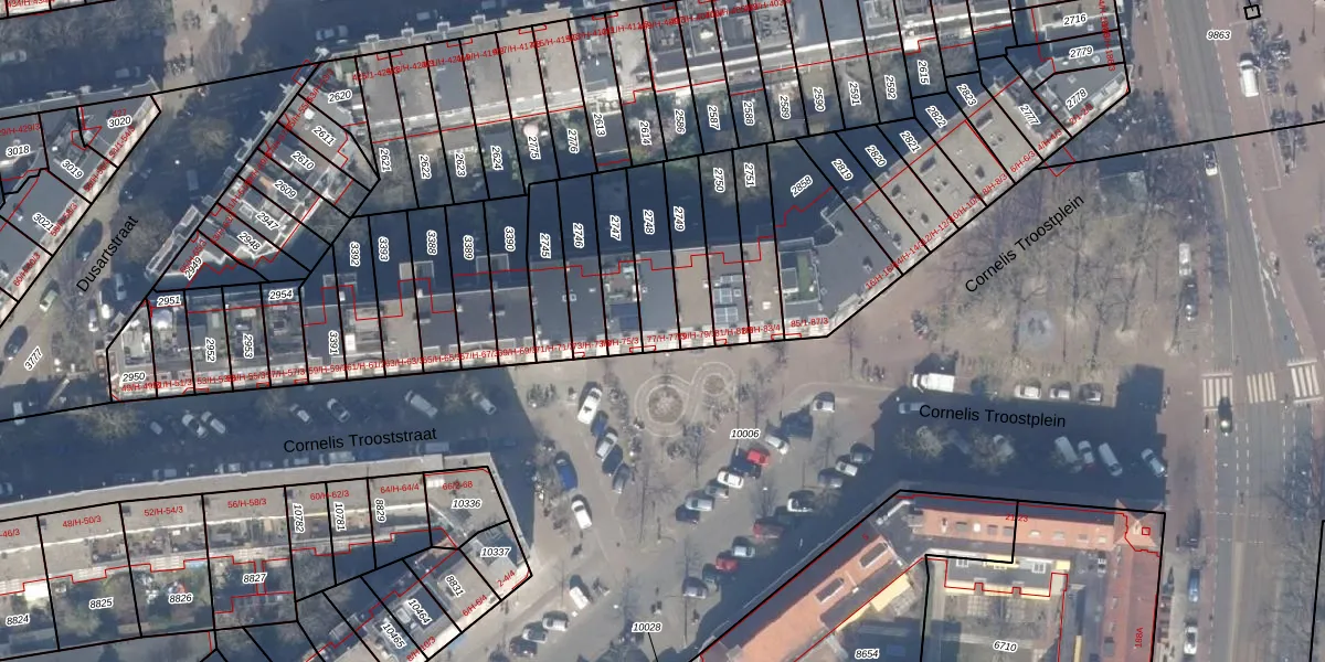 Cornelis Trooststraat 77-H is gelegen op kadastraal perceel ASD18V2748. Deze kadastrale aanduiding is uniek en wordt gebruikt door het Kadaster om eigendomsrechten en andere zakelijke rechten vast te leggen. Het perceel maakt onderdeel uit van de kadastrale gemeente Amsterdam.