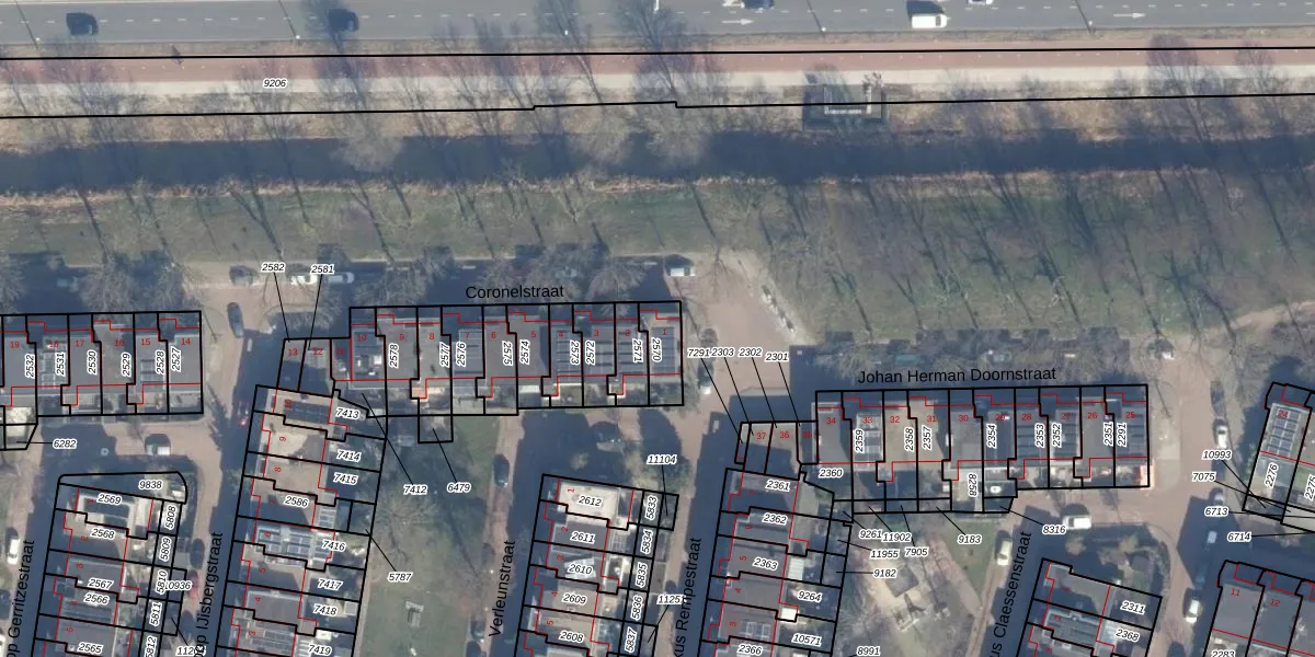Het perceel waarop Coronelstraat 1 staat heeft een oppervlakte van 85 m². Dit is een klein perceel. De perceeloppervlakte wordt geregistreerd door het Kadaster. Gedetailleerde informatie over de maten van dit perceel kunt u vinden in het rapport Kadastrale kaart met maatvoering van Coronelstraat 1.