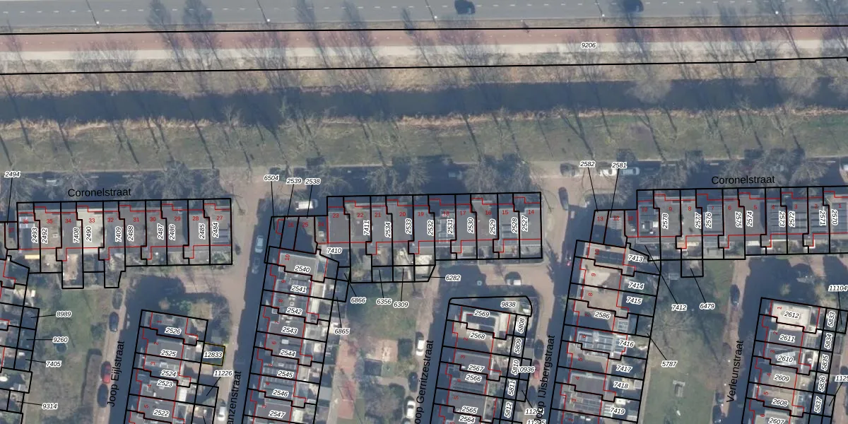Gebruik de zoekbalk of klik op een perceel voor informatie over de adressen binnen dit perceel.