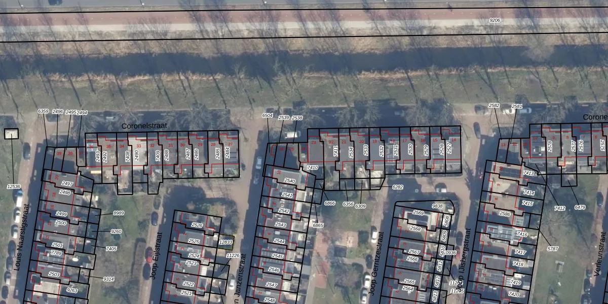 Het perceel waarop Coronelstraat 24 staat heeft een oppervlakte van 104 m². Dit is een middelgroot perceel. De perceeloppervlakte wordt geregistreerd door het Kadaster. Gedetailleerde informatie over de maten van dit perceel kunt u vinden in het rapport Kadastrale kaart met maatvoering van Coronelstraat 24.