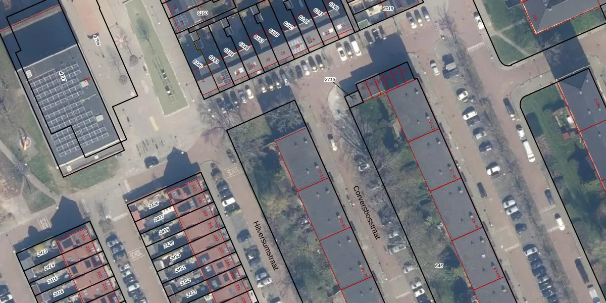 Het perceel waarop Corversbosstraat 105 staat heeft een oppervlakte van 3427 m². Dit is een zeer groot perceel. De perceeloppervlakte wordt geregistreerd door het Kadaster. Gedetailleerde informatie over de maten van dit perceel kunt u vinden in het rapport Kadastrale kaart met maatvoering van Corversbosstraat 105.