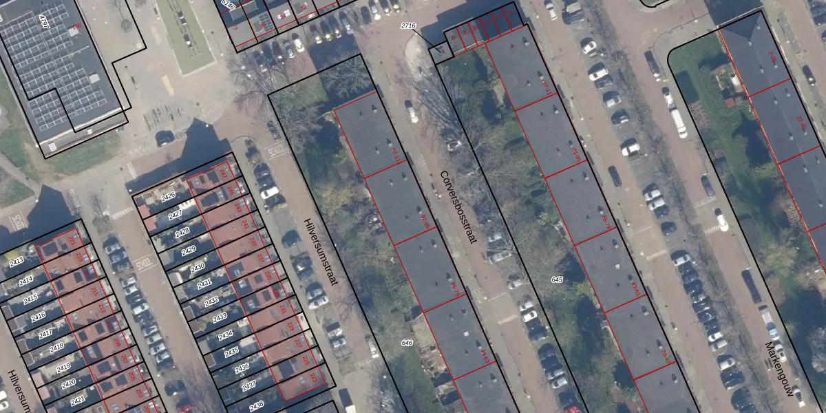 Het perceel waarop Corversbosstraat 83 staat heeft een oppervlakte van 3427 m². Dit is een zeer groot perceel. De perceeloppervlakte wordt geregistreerd door het Kadaster. Gedetailleerde informatie over de maten van dit perceel kunt u vinden in het rapport Kadastrale kaart met maatvoering van Corversbosstraat 83.