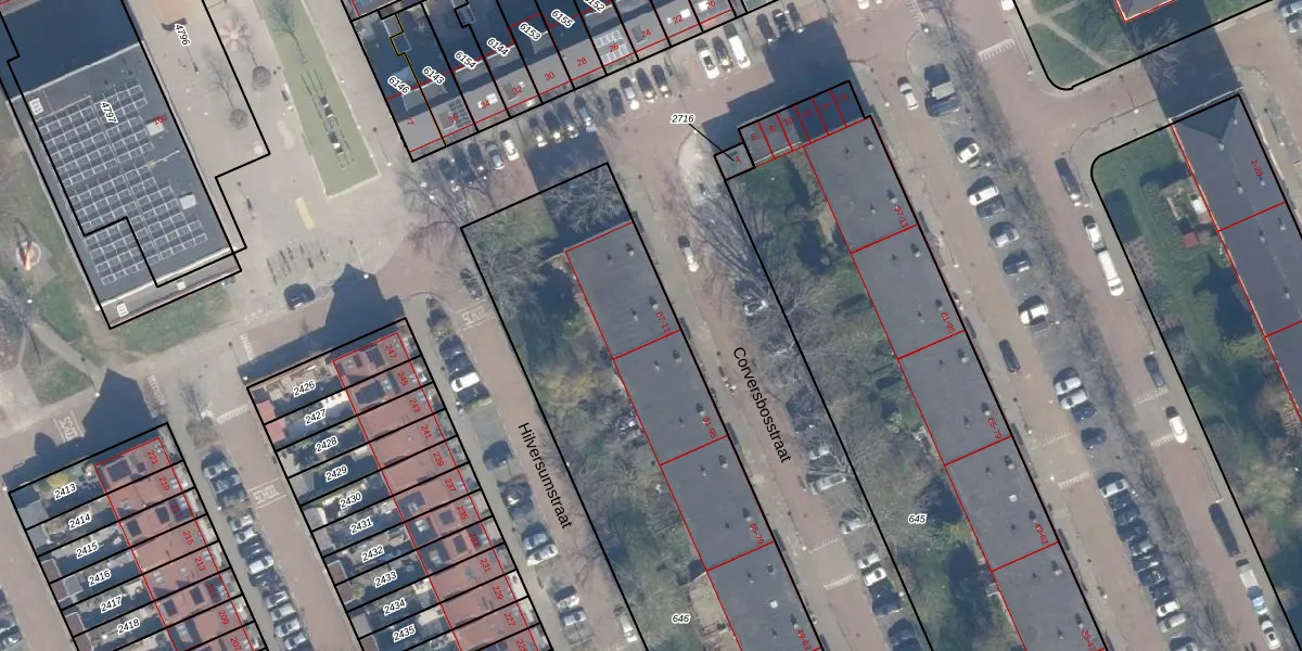Het perceel waarop Corversbosstraat 97 staat heeft een oppervlakte van 3427 m². Dit is een zeer groot perceel. De perceeloppervlakte wordt geregistreerd door het Kadaster. Gedetailleerde informatie over de maten van dit perceel kunt u vinden in het rapport Kadastrale kaart met maatvoering van Corversbosstraat 97.
