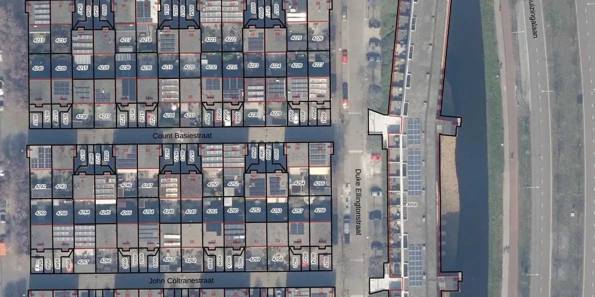 Gebruik de zoekbalk of klik op een perceel voor informatie over de adressen binnen dit perceel.