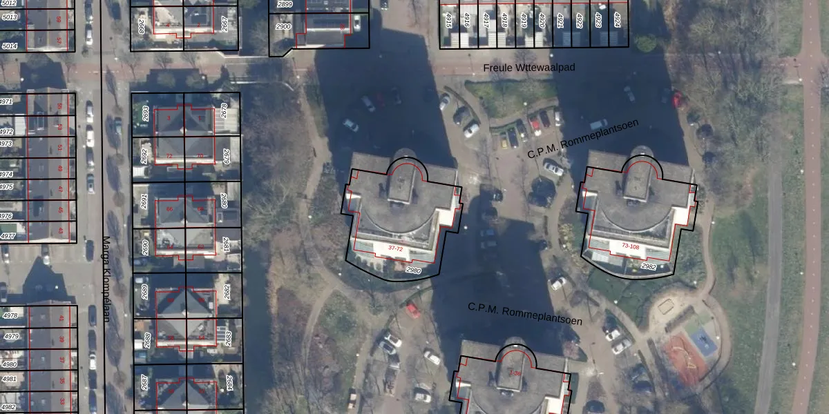 Het perceel waarop C.P.M. Rommeplantsoen 69 staat heeft een oppervlakte van 645 m². Dit is een groot perceel. De perceeloppervlakte wordt geregistreerd door het Kadaster. Gedetailleerde informatie over de maten van dit perceel kunt u vinden in het rapport Kadastrale kaart met maatvoering van C.P.M. Rommeplantsoen 69.