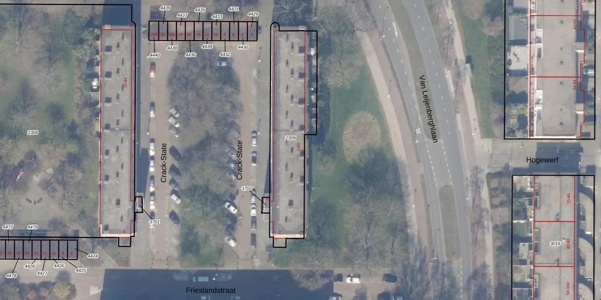 Het perceel waarop Crack-State 35 staat heeft een oppervlakte van 954 m². Dit is een groot perceel. De perceeloppervlakte wordt geregistreerd door het Kadaster. Gedetailleerde informatie over de maten van dit perceel kunt u vinden in het rapport Kadastrale kaart met maatvoering van Crack-State 35.
