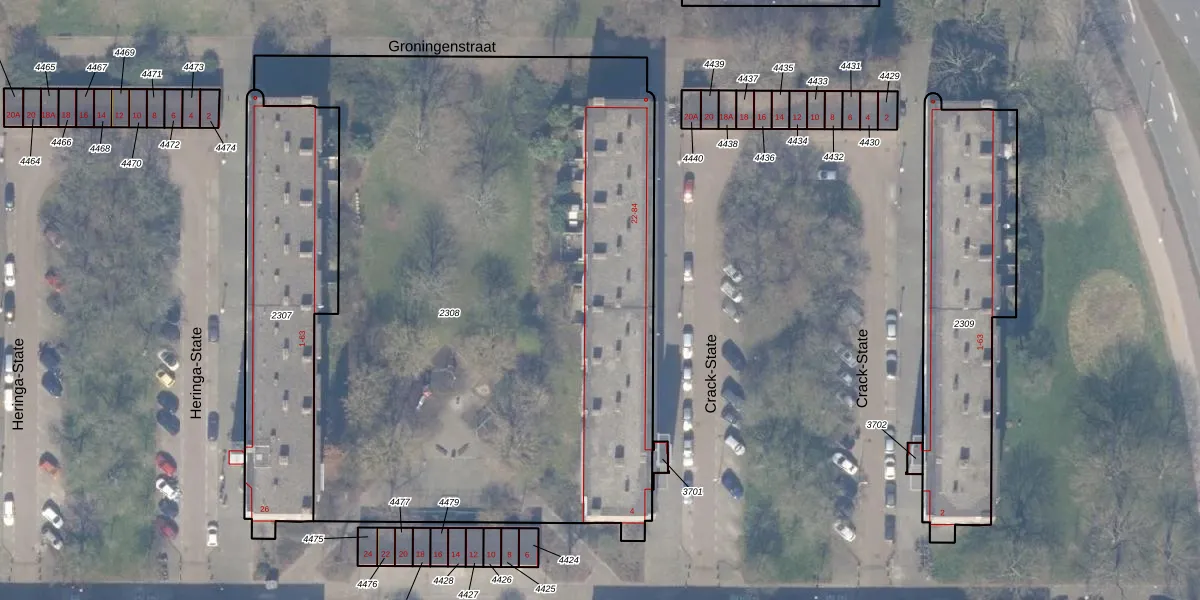 Het perceel waarop Crack-State 62 staat heeft een oppervlakte van 4332 m². Dit is een zeer groot perceel. De perceeloppervlakte wordt geregistreerd door het Kadaster. Gedetailleerde informatie over de maten van dit perceel kunt u vinden in het rapport Kadastrale kaart met maatvoering van Crack-State 62.