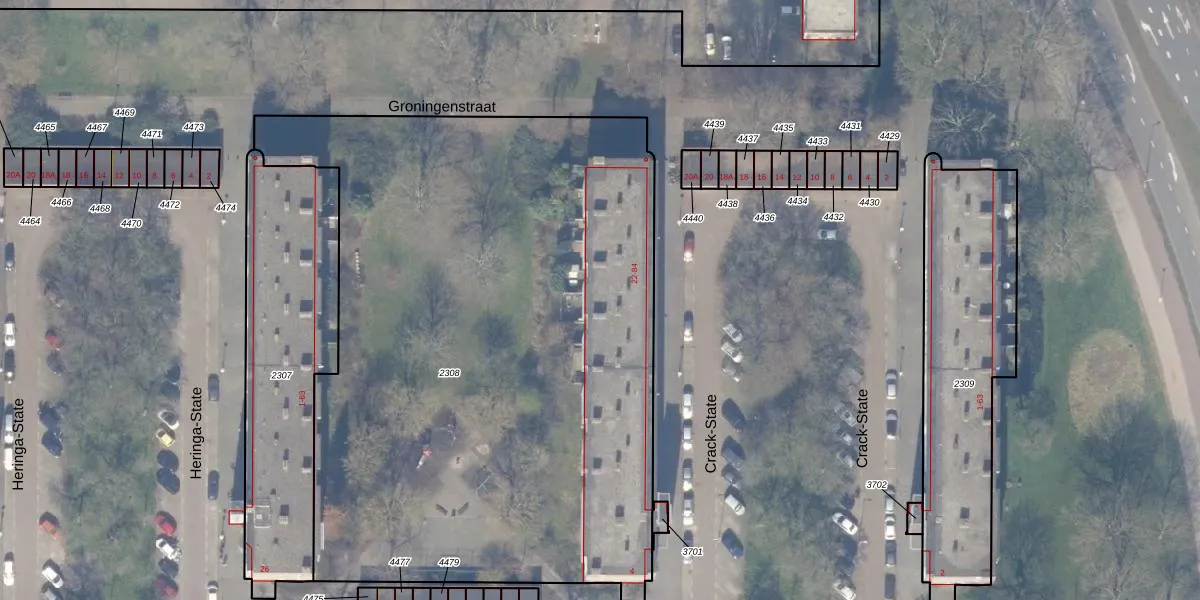 Het perceel waarop Crack-State 76 staat heeft een oppervlakte van 4332 m². Dit is een zeer groot perceel. De perceeloppervlakte wordt geregistreerd door het Kadaster. Gedetailleerde informatie over de maten van dit perceel kunt u vinden in het rapport Kadastrale kaart met maatvoering van Crack-State 76.