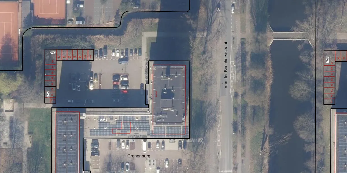 Het perceel waarop Cronenburg 132 staat heeft een oppervlakte van 2815 m². Dit is een zeer groot perceel. De perceeloppervlakte wordt geregistreerd door het Kadaster. Gedetailleerde informatie over de maten van dit perceel kunt u vinden in het rapport Kadastrale kaart met maatvoering van Cronenburg 132.