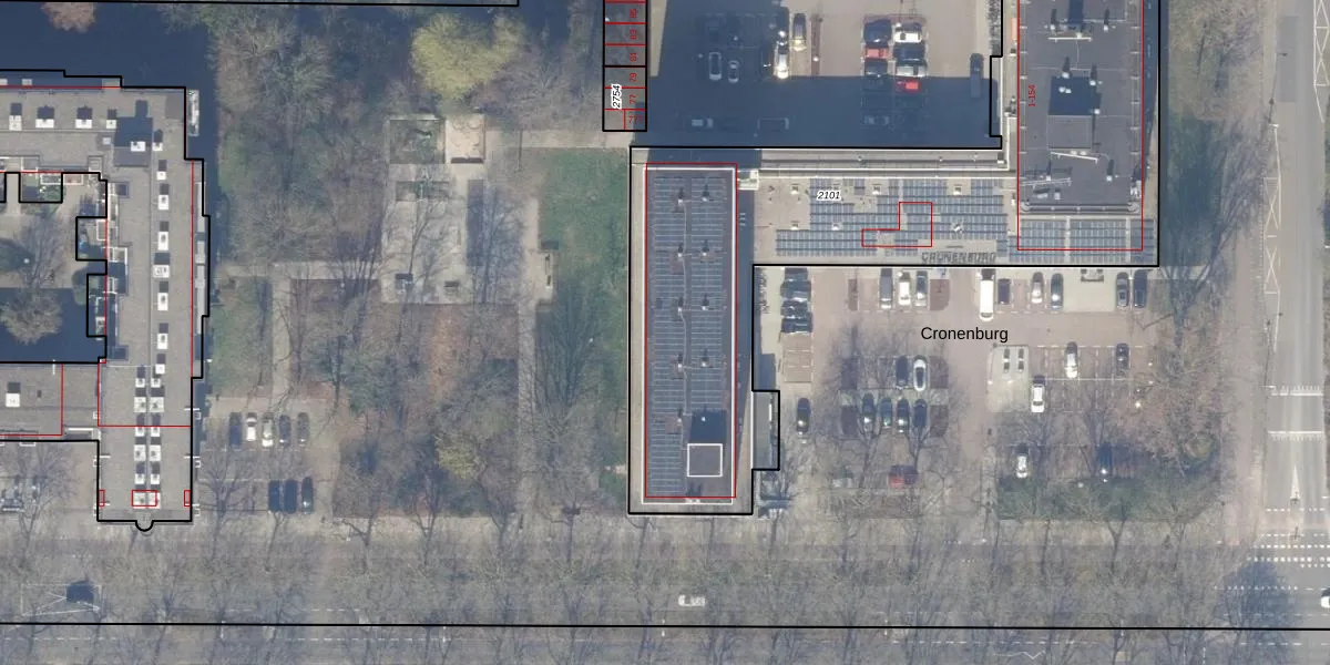 Het perceel waarop Cronenburg 19 staat heeft een oppervlakte van 2815 m². Dit is een zeer groot perceel. De perceeloppervlakte wordt geregistreerd door het Kadaster. Gedetailleerde informatie over de maten van dit perceel kunt u vinden in het rapport Kadastrale kaart met maatvoering van Cronenburg 19.