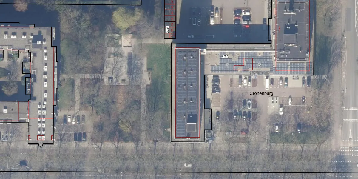Het perceel waarop Cronenburg 33 staat heeft een oppervlakte van 2815 m². Dit is een zeer groot perceel. De perceeloppervlakte wordt geregistreerd door het Kadaster. Gedetailleerde informatie over de maten van dit perceel kunt u vinden in het rapport Kadastrale kaart met maatvoering van Cronenburg 33.