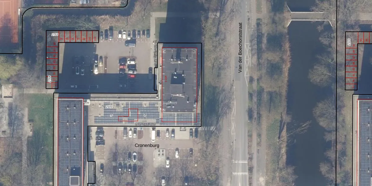 Het perceel waarop Cronenburg 34 staat heeft een oppervlakte van 2815 m². Dit is een zeer groot perceel. De perceeloppervlakte wordt geregistreerd door het Kadaster. Gedetailleerde informatie over de maten van dit perceel kunt u vinden in het rapport Kadastrale kaart met maatvoering van Cronenburg 34.