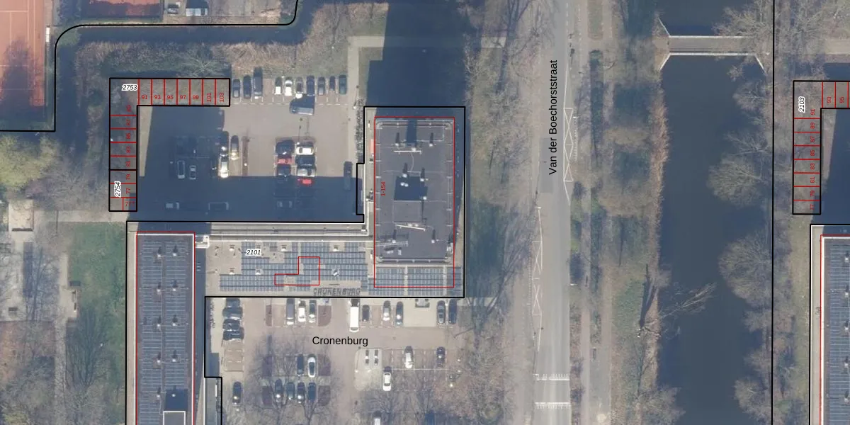 Het perceel waarop Cronenburg 52 staat heeft een oppervlakte van 2815 m². Dit is een zeer groot perceel. De perceeloppervlakte wordt geregistreerd door het Kadaster. Gedetailleerde informatie over de maten van dit perceel kunt u vinden in het rapport Kadastrale kaart met maatvoering van Cronenburg 52.
