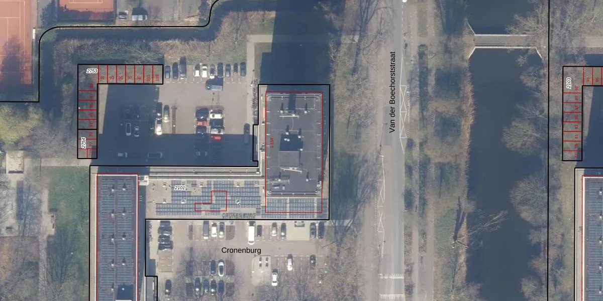 Het perceel waarop Cronenburg 70 staat heeft een oppervlakte van 2815 m². Dit is een zeer groot perceel. De perceeloppervlakte wordt geregistreerd door het Kadaster. Gedetailleerde informatie over de maten van dit perceel kunt u vinden in het rapport Kadastrale kaart met maatvoering van Cronenburg 70.