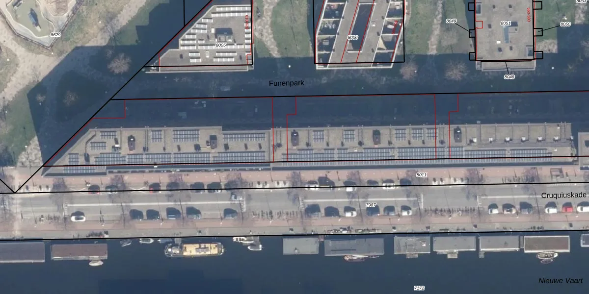 Het perceel waarop Cruquiuskade 139 staat heeft een oppervlakte van 8973 m². Dit is een zeer groot perceel. De perceeloppervlakte wordt geregistreerd door het Kadaster. Gedetailleerde informatie over de maten van dit perceel kunt u vinden in het rapport Kadastrale kaart met maatvoering van Cruquiuskade 139.