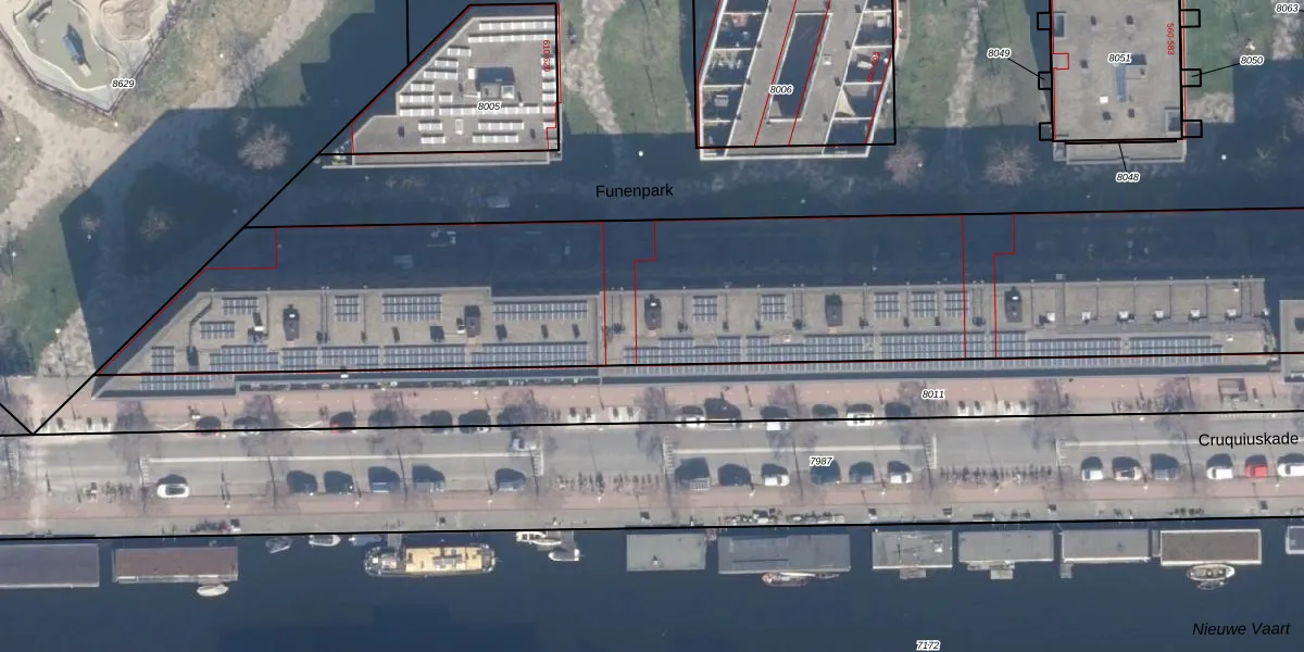 Het perceel waarop Cruquiuskade 143 staat heeft een oppervlakte van 8973 m². Dit is een zeer groot perceel. De perceeloppervlakte wordt geregistreerd door het Kadaster. Gedetailleerde informatie over de maten van dit perceel kunt u vinden in het rapport Kadastrale kaart met maatvoering van Cruquiuskade 143.