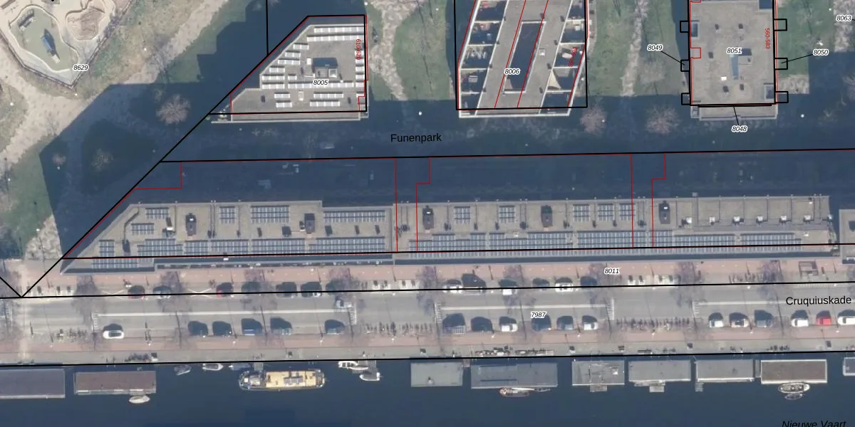 Het perceel waarop Cruquiuskade 149 staat heeft een oppervlakte van 8973 m². Dit is een zeer groot perceel. De perceeloppervlakte wordt geregistreerd door het Kadaster. Gedetailleerde informatie over de maten van dit perceel kunt u vinden in het rapport Kadastrale kaart met maatvoering van Cruquiuskade 149.