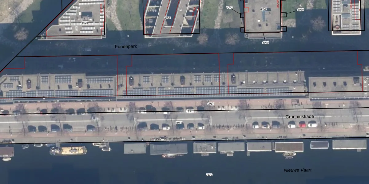 Het perceel waarop Cruquiuskade 161 staat heeft een oppervlakte van 8973 m². Dit is een zeer groot perceel. De perceeloppervlakte wordt geregistreerd door het Kadaster. Gedetailleerde informatie over de maten van dit perceel kunt u vinden in het rapport Kadastrale kaart met maatvoering van Cruquiuskade 161.
