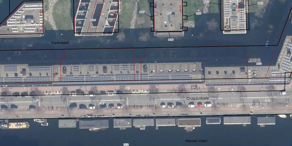 Het perceel waarop Cruquiuskade 189 staat heeft een oppervlakte van 8973 m². Dit is een zeer groot perceel. De perceeloppervlakte wordt geregistreerd door het Kadaster. Gedetailleerde informatie over de maten van dit perceel kunt u vinden in het rapport Kadastrale kaart met maatvoering van Cruquiuskade 189.
