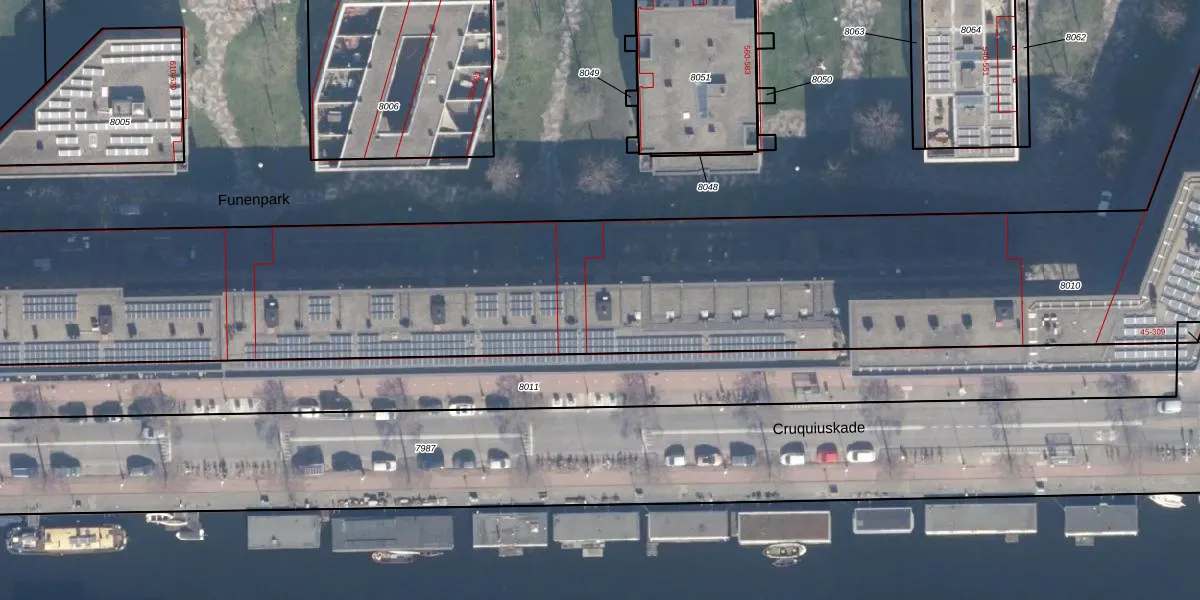 Het perceel waarop Cruquiuskade 215 staat heeft een oppervlakte van 8973 m². Dit is een zeer groot perceel. De perceeloppervlakte wordt geregistreerd door het Kadaster. Gedetailleerde informatie over de maten van dit perceel kunt u vinden in het rapport Kadastrale kaart met maatvoering van Cruquiuskade 215.