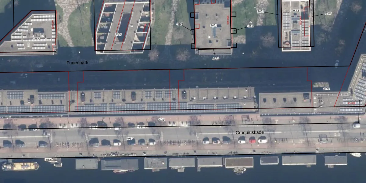 Cruquiuskade 221 is gelegen op kadastraal perceel ASD02A8010. Deze kadastrale aanduiding is uniek en wordt gebruikt door het Kadaster om eigendomsrechten en andere zakelijke rechten vast te leggen. Het perceel maakt onderdeel uit van de kadastrale gemeente Amsterdam.