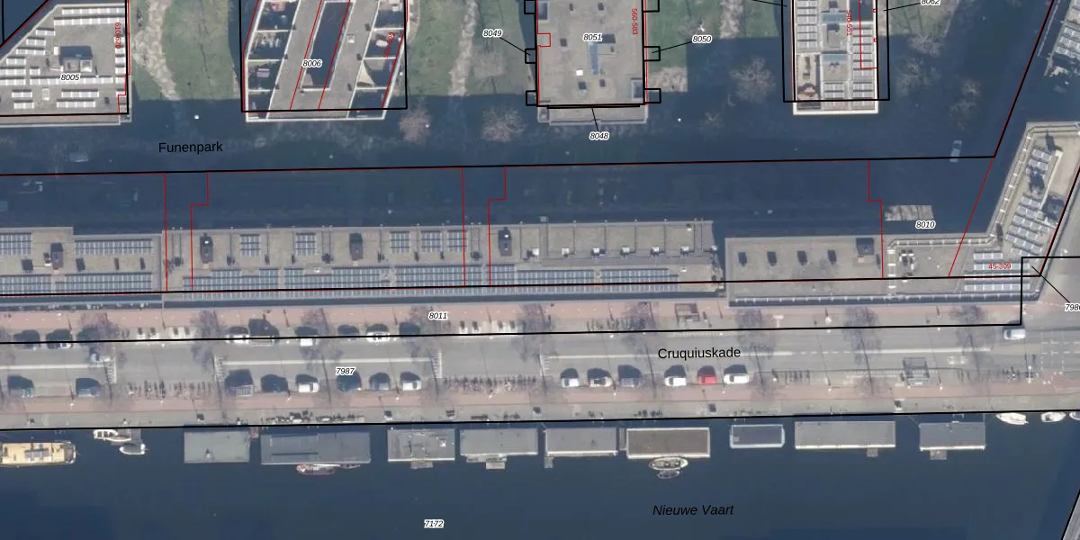 Het perceel waarop Cruquiuskade 239 staat heeft een oppervlakte van 8973 m². Dit is een zeer groot perceel. De perceeloppervlakte wordt geregistreerd door het Kadaster. Gedetailleerde informatie over de maten van dit perceel kunt u vinden in het rapport Kadastrale kaart met maatvoering van Cruquiuskade 239.