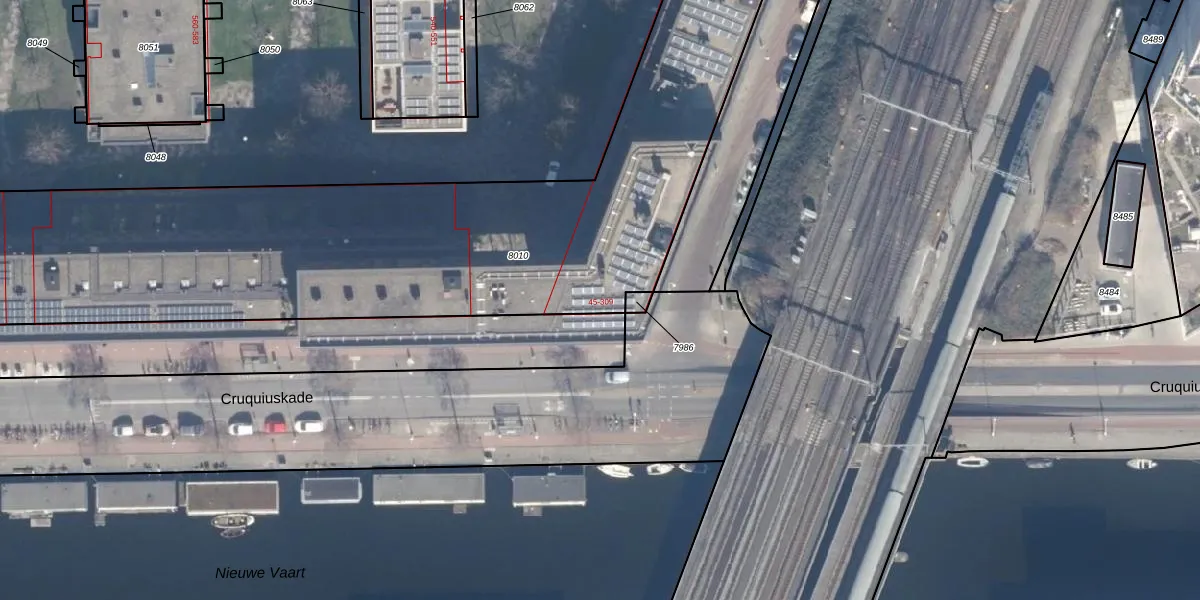 Het perceel waarop Cruquiuskade 285 staat heeft een oppervlakte van 8973 m². Dit is een zeer groot perceel. De perceeloppervlakte wordt geregistreerd door het Kadaster. Gedetailleerde informatie over de maten van dit perceel kunt u vinden in het rapport Kadastrale kaart met maatvoering van Cruquiuskade 285.