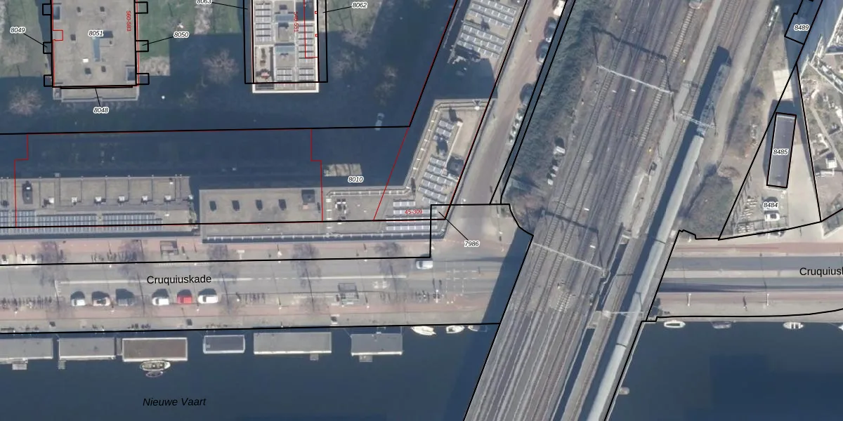 Het perceel waarop Cruquiuskade 299 staat heeft een oppervlakte van 8973 m². Dit is een zeer groot perceel. De perceeloppervlakte wordt geregistreerd door het Kadaster. Gedetailleerde informatie over de maten van dit perceel kunt u vinden in het rapport Kadastrale kaart met maatvoering van Cruquiuskade 299.