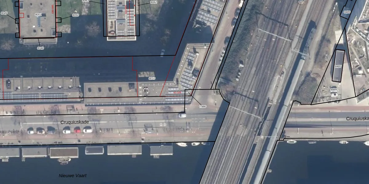 Het perceel waarop Cruquiuskade 307 staat heeft een oppervlakte van 8973 m². Dit is een zeer groot perceel. De perceeloppervlakte wordt geregistreerd door het Kadaster. Gedetailleerde informatie over de maten van dit perceel kunt u vinden in het rapport Kadastrale kaart met maatvoering van Cruquiuskade 307.