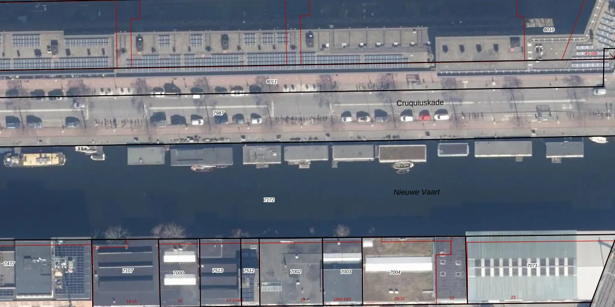 Cruquiuskade 34 is gelegen op kadastraal perceel ASD02A7172. Deze kadastrale aanduiding is uniek en wordt gebruikt door het Kadaster om eigendomsrechten en andere zakelijke rechten vast te leggen. Het perceel maakt onderdeel uit van de kadastrale gemeente Amsterdam.