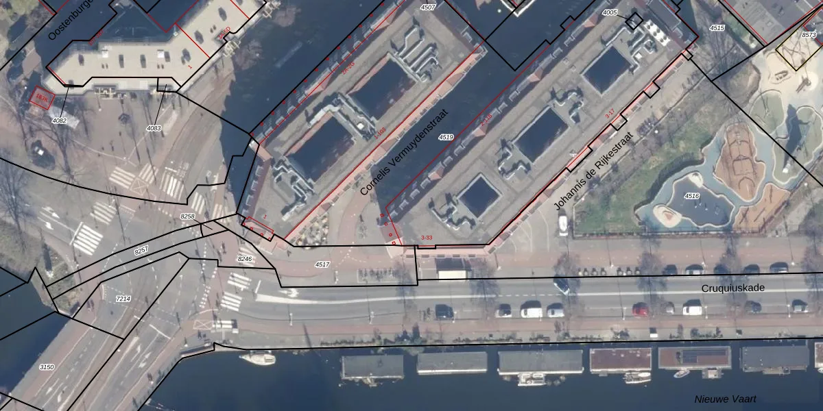 Cruquiuskade 7 is gelegen op kadastraal perceel ASD10N4519. Deze kadastrale aanduiding is uniek en wordt gebruikt door het Kadaster om eigendomsrechten en andere zakelijke rechten vast te leggen. Het perceel maakt onderdeel uit van de kadastrale gemeente Amsterdam.