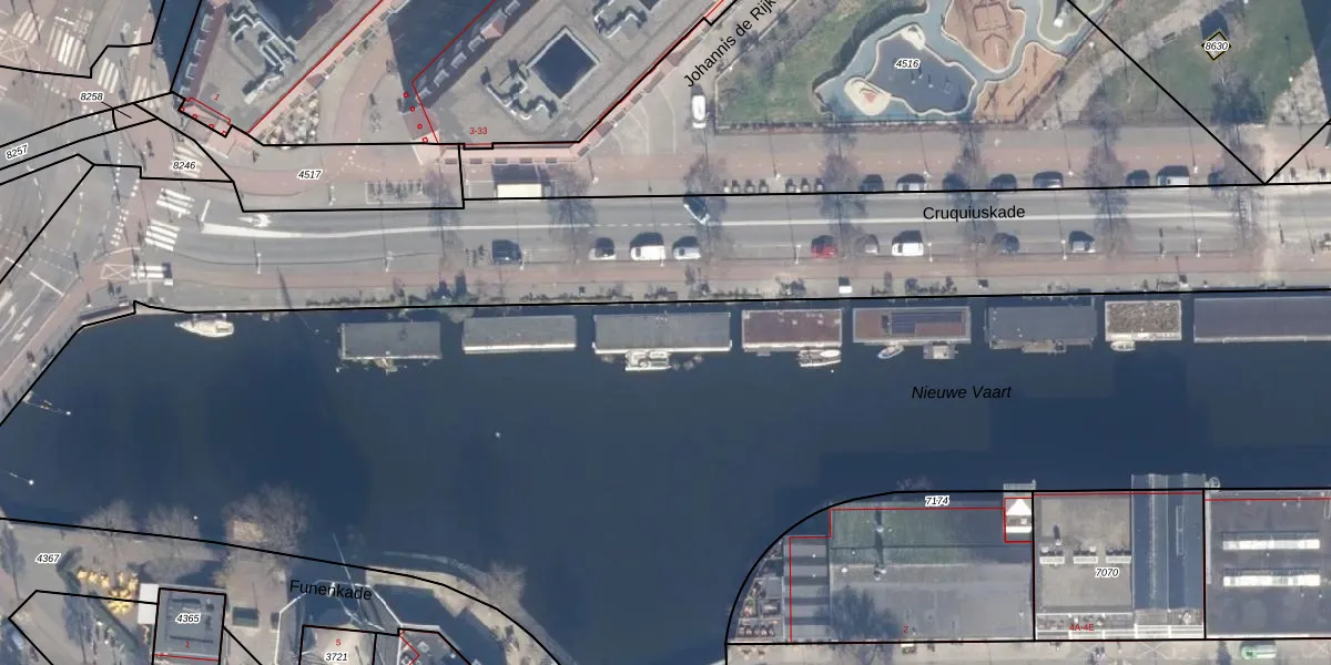 Cruquiuskade 8 is gelegen op kadastraal perceel ASD02A7172. Deze kadastrale aanduiding is uniek en wordt gebruikt door het Kadaster om eigendomsrechten en andere zakelijke rechten vast te leggen. Het perceel maakt onderdeel uit van de kadastrale gemeente Amsterdam.