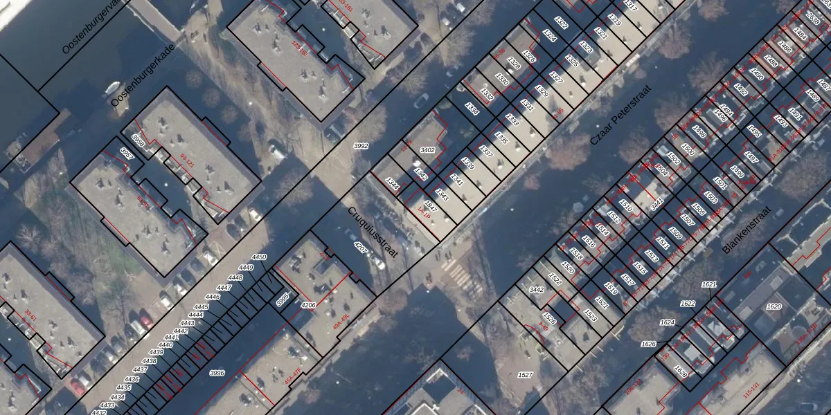 Het perceel waarop Cruquiusstraat 1-K staat heeft een oppervlakte van 92 m². Dit is een klein perceel. De perceeloppervlakte wordt geregistreerd door het Kadaster. Gedetailleerde informatie over de maten van dit perceel kunt u vinden in het rapport Kadastrale kaart met maatvoering van Cruquiusstraat 1-K.