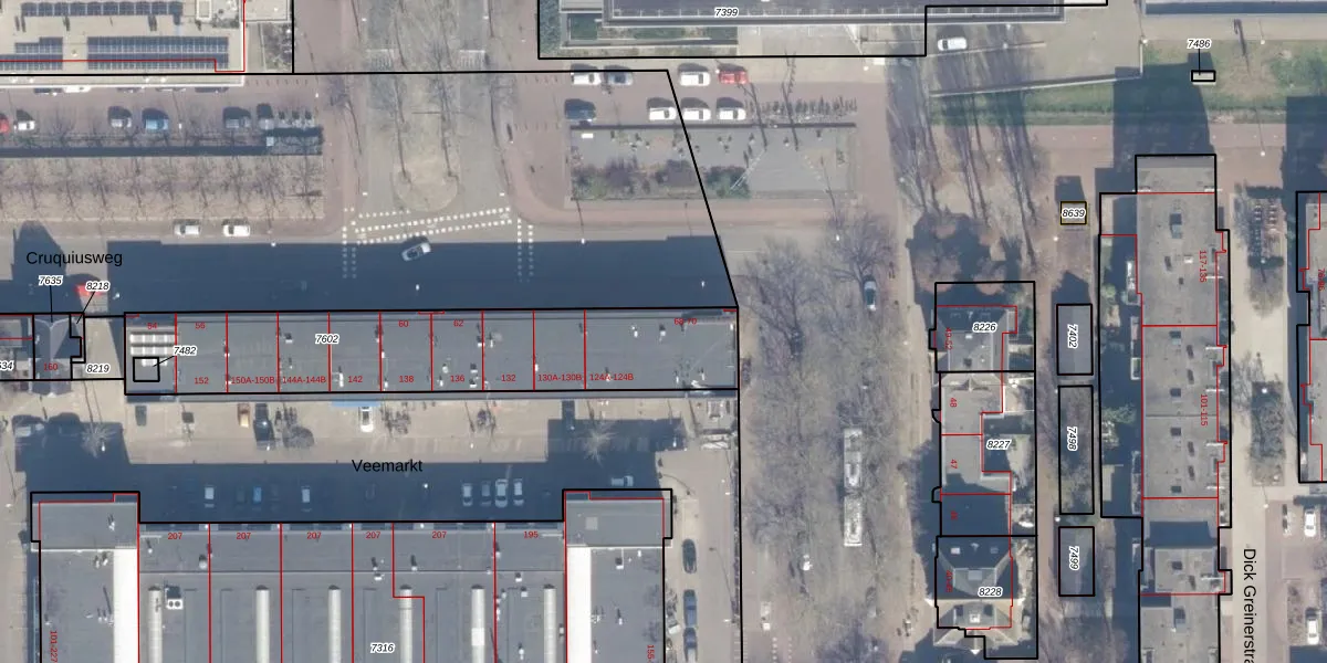 Het perceel waarop het adres ligt is ASD02-A-7602. De afkorting 'ASD02' staat voor kadastrale gemeente Amsterdam. Het perceel is kleiner dan gemiddeld in Amsterdam. Het perceel is 1138 m² groot, terwijl het gemiddelde ligt op 2763,93 m². Het kleinste perceel in de kadastrale gemeente is 0 m² groot. De grootste perceeloppervlakte is 14,3 ha. Op het perceel liggen in totaal 19 adressen. In de Basisregistratie Kadaster (BRK) werden de grenzen van het perceel geregistreerd op 24-10-2007.