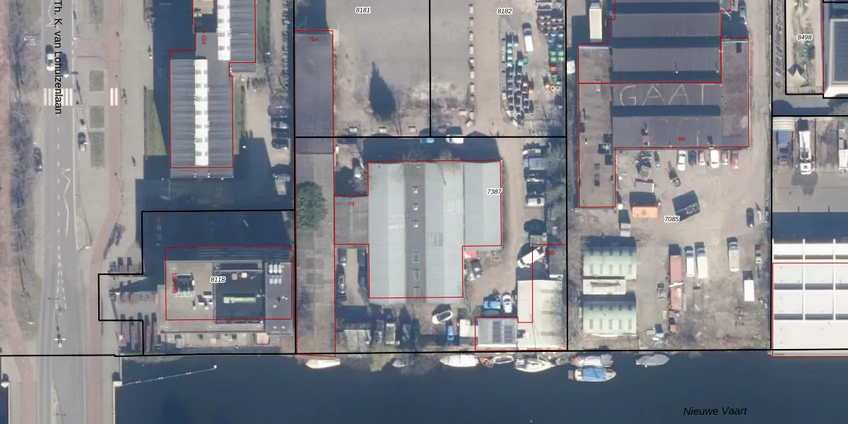 Het perceel waarop Cruquiusweg 78 staat heeft een oppervlakte van 3266 m². Dit is een zeer groot perceel. De perceeloppervlakte wordt geregistreerd door het Kadaster. Gedetailleerde informatie over de maten van dit perceel kunt u vinden in het rapport Kadastrale kaart met maatvoering van Cruquiusweg 78.