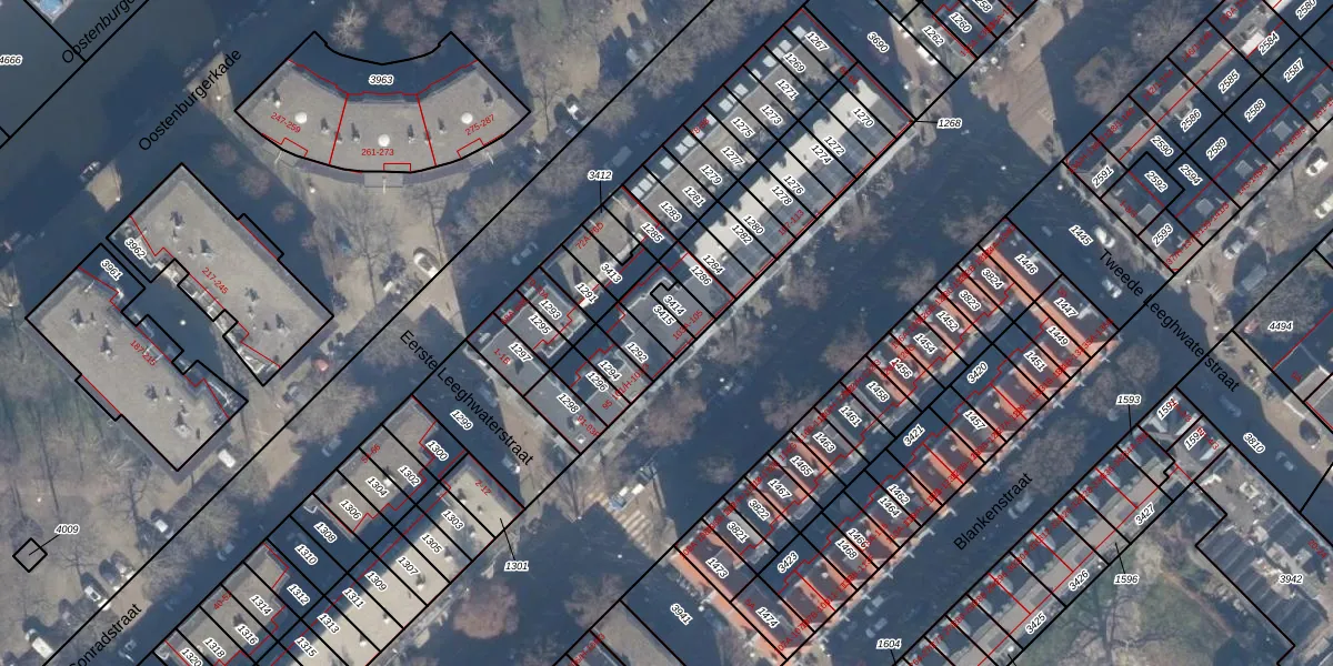 Het adres is gelegen op perceel 3415 in de sectie N en de kadastrale gemeente Amsterdam. De kadastrale aanduiding is aldus ASD10-N-3415. De gemiddelde perceelgrootte in Amsterdam is 1951,1 m². Dit perceel is kleiner: de perceeloppervlakte bedraagt 65 m². Het kleinste perceel in de kadastrale gemeente is 0 m² groot. De grootste perceeloppervlakte is 17,2 ha. Op het perceel zijn 4 adressen aanwezig. De huidige grenzen van het perceel zijn digitaal in de Basisregistratie Kadaster (BRK) geregistreerd op 13-09-2006.