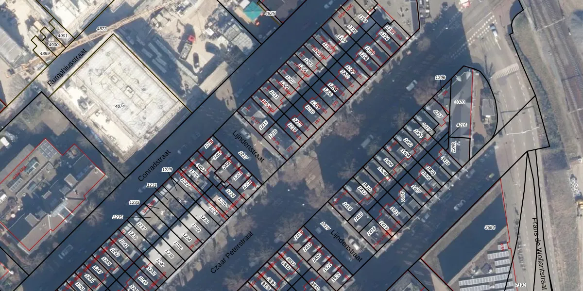 Het perceel waarop Czaar Peterstraat 173 staat heeft een oppervlakte van 78 m². Dit is een klein perceel. De perceeloppervlakte wordt geregistreerd door het Kadaster. Gedetailleerde informatie over de maten van dit perceel kunt u vinden in het rapport Kadastrale kaart met maatvoering van Czaar Peterstraat 173.