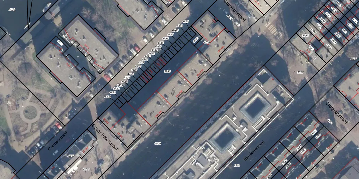 Het perceel waarop Czaar Peterstraat 43-E staat heeft een oppervlakte van 1277 m². Dit is een zeer groot perceel. De perceeloppervlakte wordt geregistreerd door het Kadaster. Gedetailleerde informatie over de maten van dit perceel kunt u vinden in het rapport Kadastrale kaart met maatvoering van Czaar Peterstraat 43-E.