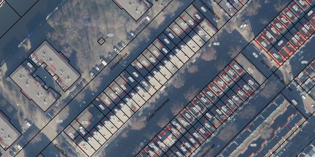 Het perceel waarop het adres ligt is ASD10-N-1319. De afkorting 'ASD10' staat voor kadastrale gemeente Amsterdam. Het perceel is kleiner dan gemiddeld in Amsterdam. Het perceel is 58 m² groot, terwijl het gemiddelde ligt op 1951,1 m². Het kleinste perceel in de kadastrale gemeente is 0 m² groot. De grootste perceeloppervlakte is 17,2 ha. Er zijn 9 adressen aanwezig op het perceel. In de Basisregistratie Kadaster (BRK) werden de grenzen van het perceel geregistreerd op 27-06-2002.