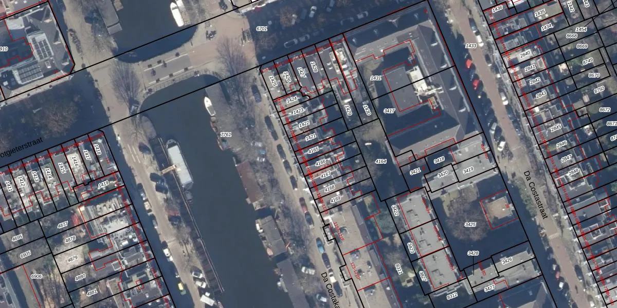 Da Costakade 105-1 is gelegen op kadastraal perceel ASD13Q4165. Deze kadastrale aanduiding is uniek en wordt gebruikt door het Kadaster om eigendomsrechten en andere zakelijke rechten vast te leggen. Het perceel maakt onderdeel uit van de kadastrale gemeente Amsterdam.