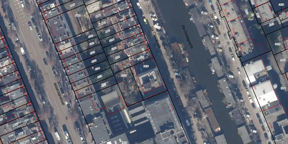 Het adres is gelegen op perceel 7876 in de sectie Q en de kadastrale gemeente Amsterdam. De kadastrale aanduiding is aldus ASD13-Q-7876. De gemiddelde perceeloppervlakte in de kadastrale gemeente Amsterdam is 392,9 m². Dit perceel is met zijn 442 m² dus groter dan gemiddeld. Het grootste perceel in de kadastrale gemeente is 4,8 ha. Het kleinste perceel heeft een oppervlakte van 1 m². Er zijn 21 adressen aanwezig op het perceel. In de Basisregistratie Kadaster (BRK) werden de grenzen van het perceel geregistreerd op 28-11-1997.