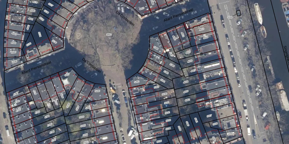 Da Costaplein 13-2 is gelegen op kadastraal perceel ASD13Q5391. Deze kadastrale aanduiding is uniek en wordt gebruikt door het Kadaster om eigendomsrechten en andere zakelijke rechten vast te leggen. Het perceel maakt onderdeel uit van de kadastrale gemeente Amsterdam.