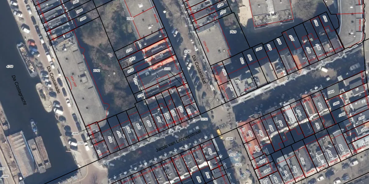 Da Costastraat 102-H is gelegen op kadastraal perceel ASD13Q1713. Deze kadastrale aanduiding is uniek en wordt gebruikt door het Kadaster om eigendomsrechten en andere zakelijke rechten vast te leggen. Het perceel maakt onderdeel uit van de kadastrale gemeente Amsterdam.